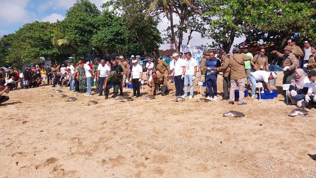 "Kedua, yang merusak habitat penyu ini adalah sampah dan limbah. Karena itu saya minta kesadaran untuk membuang sampah ke tempat yang sudah disediakan. Bahkan di Bali, kami bangun 3 TPST besar untuk pengolahan sampah," tutur Dohong.