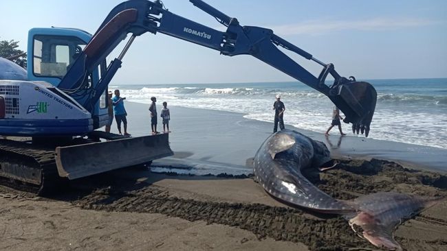 Simak Video "Video Hiu Tutul 2,5 Ton Terdampar di Pantai Cilacap, Dagingnya Jadi Rebutan"