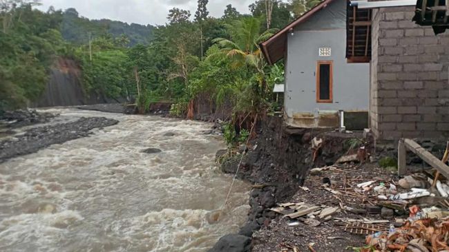 "Sebenarnya dulu saat mereka membangun rumah jaraknya cukup jauh dari sungai, tapi karena sering banjir membuat aliran sungai terus melebar dan akhirnya fondasi rumah warga tersebut ikut tergerus," kata Putra.