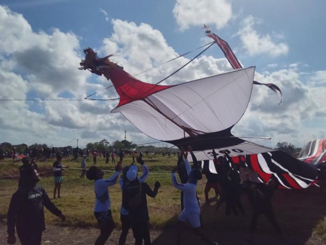 Tiga jenis layangan yang diterbangkan itu berukuran jumbo dengan rerata lebar lima meter dan panjang hingga puluhan meter. Bahkan, biaya pembuatan layang-layang berukuran jumbo itu mencapai puluhan juta rupiah.