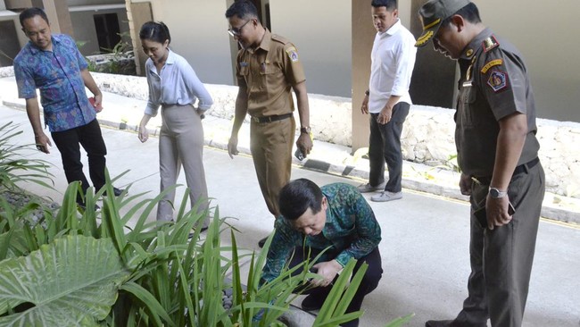 Bupati Klungkung I Nyoman Suwirta memimpin tim pembinaan dan pengawasan Kawasan Tanpa Rokok (KTR) melakukan inspeksi mendadak (sidak) untuk menegakkan Peraturan Daerah (Perda) tersebut. Suwirta dan jajaranya menyasa Hotel Wyndham Tamansari Jivva Resort di Lepang, Klungkung, Senin (24/7/2023).