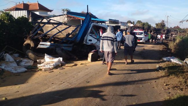 Kapolsek Kintamani Kompol Ruli Agus Susanto menegaskan tidak ada korban jiwa dalam peristiwa itu. Namun, dua sopir yang terlibat kecelakaan, yakni pengemudi truk tronton I Komang Suarta (45) mengalami patah tulang kaki kanan, sedangkan pengemudi truk Isuzu I Wayan Sutirtayasa (28) luka lecet di beberapa bagian tubuh.