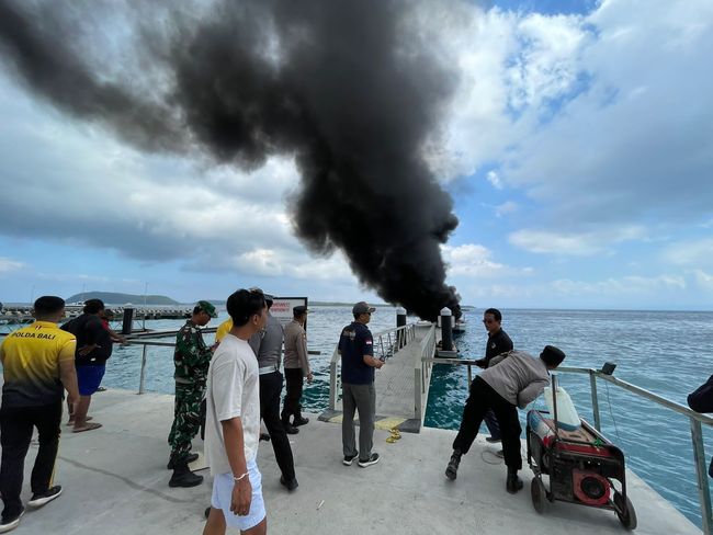 Satu orang mengalami luka bakar dalam insiden terbakarnya kapal cepat atau speedboat di Pelabuhan Banjar Nyuh, Desa Ped, Nusa Penida, Klungkung, Bali, Jumat pagi (4/8/2023). Korban luka-luka itu adalah kapten kapal bernama Made Jana.