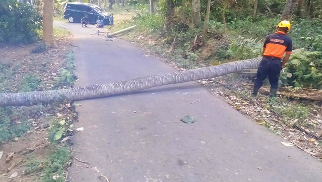Tirtana mengaku sudah berkoordinasi dengan instansi terkait agar tiang listrik maupun kabel yang melintang di jalan segera dievakuasi. "Penanganan pohon tumbang tersebut sudah selesai kami lakukan dan akses jalan juga sudah kembali normal dan dapat dilalui oleh masyarakat yang akan menuju ke pantai," tandasnya.