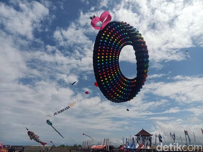 Pantauan detikBali di lokasi, Jumat (18/8/2023), langit pesisir Gumi Makepung -sebutan Jembrana- kini dihiasi oleh puluhan layang-layang besar. Semangat para peserta terlihat saat mereka menarik layang-layang raksasa ini, diiringi oleh harmoni alat musik tradisional khas Jembrana, yaitu Jegog.