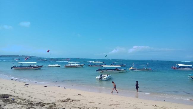 Turis asal Jepang bernama Kikuchi Satoshi tewas terjatuh saat bermain flying fish di Pantai Tanjung Benoa, Kuta Selatan, Badung, Bali, Jumat (18/8/2023). Turis berusia 60 tahun itu bermain wahana wisata bahari itu bersama putranya bernama Kikuchi Haruki dan seorang pemandu.
