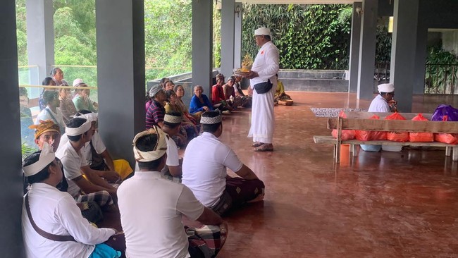 Pengelola Ayuterra Resort di Desa Kedewatan, Ubud, Gianyar, Bali, menggelar upacara penebusan dan pecaruan pada Selasa (5/9/2023) seusai tragedi lift maut yang menewaskan lima karyawannya. Upacara tersebut bertujuan untuk membersihkan aura negatif, permohonan maaf kepada alam, dan memberikan ketenangan kepada roh para korban.