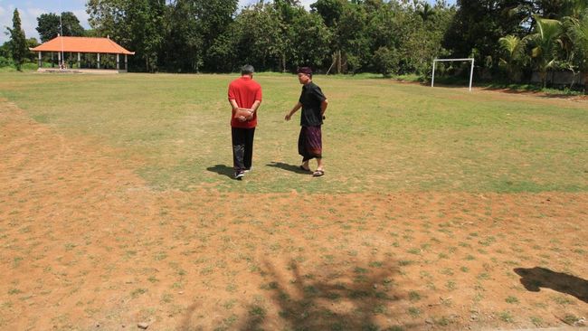 Bupati Klungkung I Nyoman Suwirta didampingi Camat Banjarangkan Dewa Made Aswin melakukan sidak terhadap proyek revitalisasi Lapangan Umum Pau di Desa Tihingan, Kecamatan Banjarangkan, Jumat (8/9/2023). Ternyata, setelah jadi, lapangan ini jauh dari harapan. Padahal, awalnya Klungkung bercita-cita ingin punya lapangan standar nasional.
