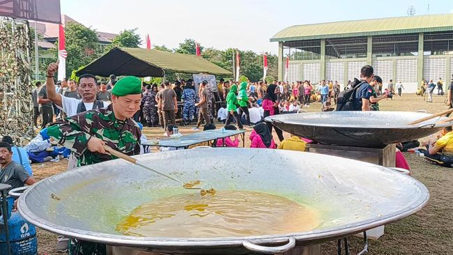 "Saya masak dengan tiga kuali besar dan dibantu oleh tiga matra TNI Angkatan Darat, Angkatan Udara, dan Angkatan Laut. Jadi, ini simbolis bahwa TNI kita tetap solid dan kuat," kata Bobon Santoso saat ditemui detikBali di sela-sela kegiatan tersebut, Minggu (24/9/2023).
