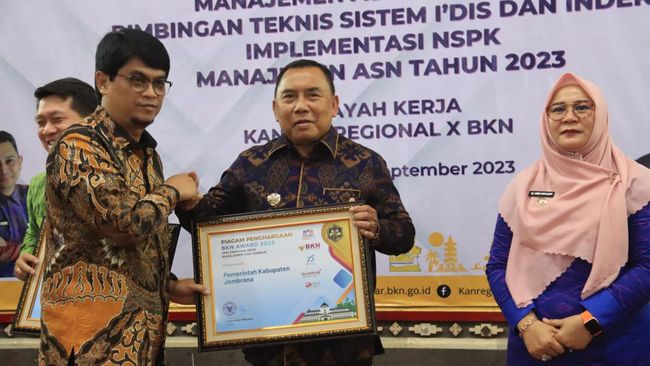 Pemerintah Kabupaten (Pemkab) Jembrana meraih empat penghargaan dalam ajang BKN Award 2023 yang diselenggarakan oleh Badan Kepegawaian Negara (BKN). Penghargaan tersebut diberikan atas kinerja pengelolaan manajemen aparatur sipil negara (ASN) di Jembrana.