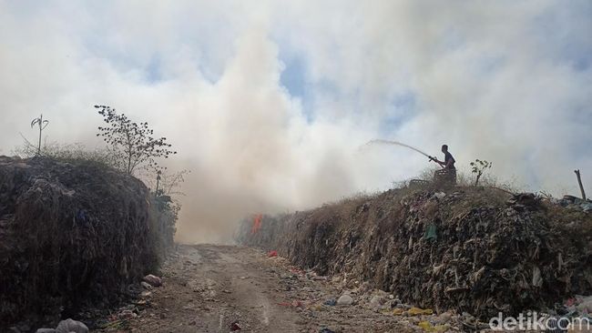 Kebakaran pada tumpukan sampah tersebut mencapai satu hektare dari total luas TPA Mandung seluas 2,7 hektare.