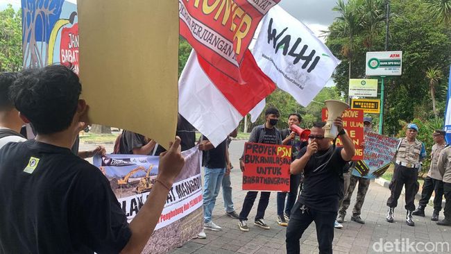 "Momentum ini bisa digunakan oleh Pak Pj minimal memberi sanksi tegas aktivitas Pelindo. Kalau bisa besok ya (disanksi)," kata Direktur Eksekutif Walhi Bali Made Krisna Dinata alias Bokis saat aksi demonstrasi di depan kantor Gubernur Bali, Denpasar, Selasa (28/11/2023).