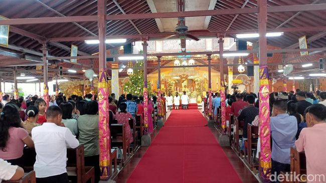Umat Kristen di Bali merayakan Natal dengan khidmat, hari ini. Di Kabupaten Badung, ibadah Natal salah satunya digelar di gereja Paroki Tritunggal Maha Kudus, Tuka, Dalung, Kuta Utara.