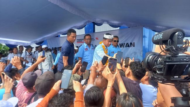 Gibran tiba di eks Pelabuhan Buleleng pukul 09.45 Wita. Kakak dari Ketua Umum PSI, Kaesang Pangarep, itu disambut tarian serta gamelan Bali.