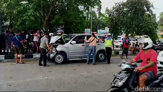 "Mobil boks tiba-tiba berhenti, padahal masih lampu hijau, akibatnya dihantam kendaraan lain dari belakang termasuk saya bawa truk dan mobil boks sampai masuk ke taman tengah jalan," katanya.