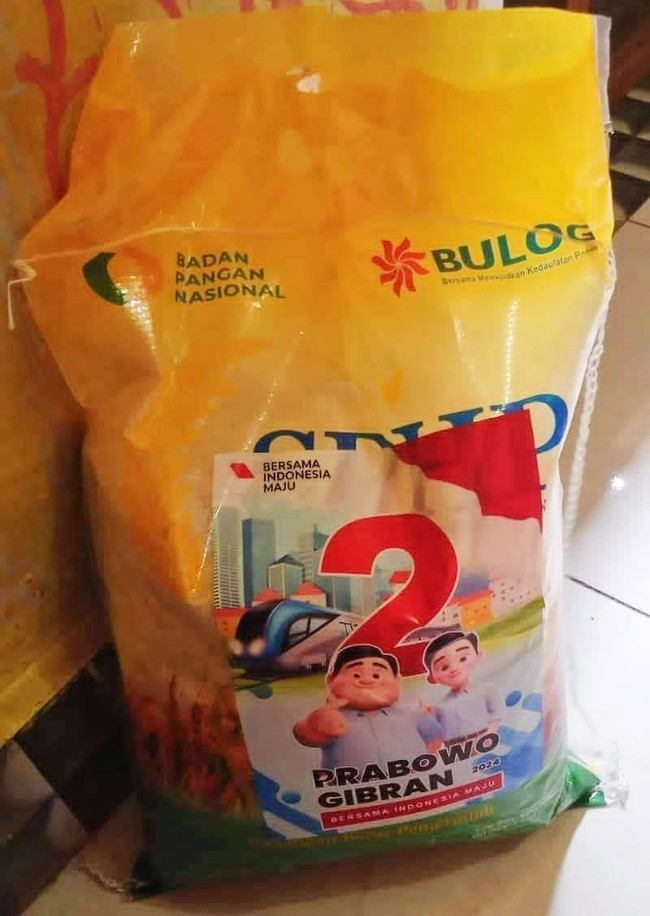 Sebelumnya, dikutip dari detikFinance, viral foto beras Perum Bulog atau beras stabilisasi pasokan dan harga pangan (SPHP) ditempeli foto pasangan calon nomor urut 2, calon presiden (capres) Prabowo Subianto dan (cawapres) calon wakil presiden Gibran Rakabuming Raka. Foto tersebut beredar di media sosial X, di mana beras yang betuliskan SPHP itu ditutupi dengan stiker pasangan calon nomor 2 tersebut.