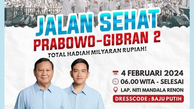 Seluruh peserta jalan sehat harus menggunakan baju putih untuk menandakan warna identitas Partai Gerindra. Persiapan acara jalan sehat sudah hampir rampung. Saat ini, jumlah yang mendaftar sudah 80 ribu orang dengan target minimal 100 ribu orang.