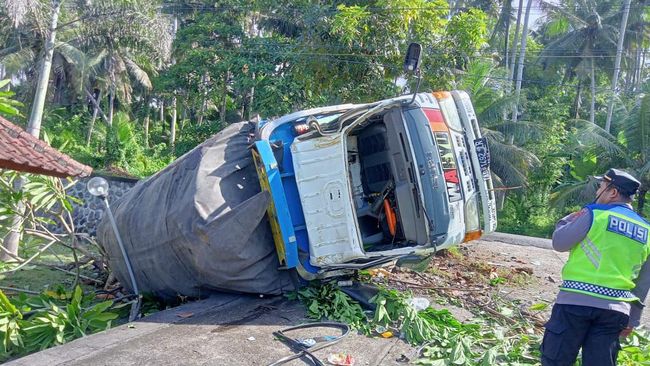 "Saat tiba di lokasi kejadian, tiba-tiba pohon kelapa tumbang dan menimpa truknya. Sopir berusaha menghindar ke kanan, tapi truknya oleng dan terjatuh di bahu jalan sebelah kanan," ungkap Yusuf kepada detikBali.