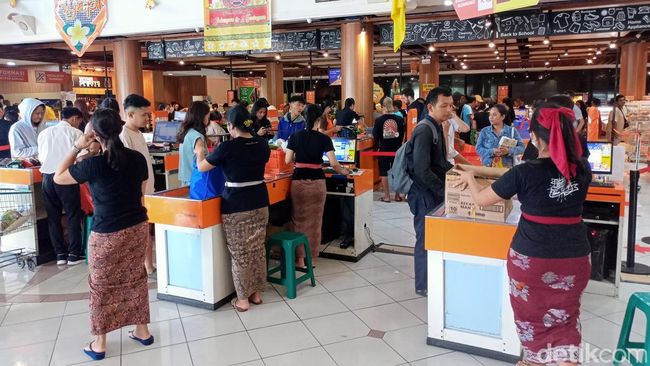 Salah satu supermarket yang ramai dikunjungi adalah Tiara Gatsu di Kelurahan Kerobokan Kaja, Kecamatan Kuta Utara, Badung. Pantauan detikBali, Minggu (10/3/2024) sore, sejumlah toko maupun supermarket tampak dipadati pembeli.
