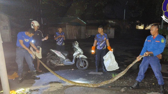 "Regu 1 Damkar yang piket langsung menuju lokasi dan berhasil mengevakuasi ular sanca tersebut sekitar pukul 05.27 Wita. Ular itu panjangnya 3,5 meter dan beratnya 15 kilogram," kata Leo.