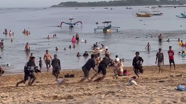 Video keributan diduga melibatkan sejumlah pria di Pantai Mertasari, Desa Sanur Kauh, Kota Denpasar, Bali, viral di media sosial (medsos). Keributan itu disaksikan oleh para pengunjung lainnya di lokasi.