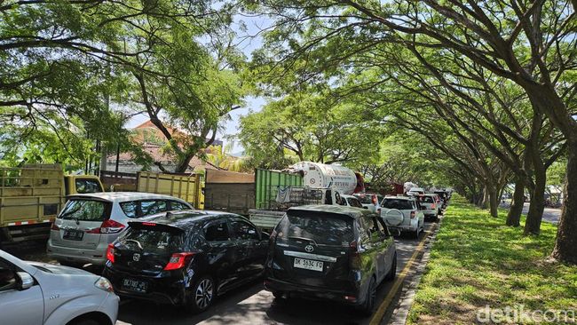 Beberapa penumpang terlihat turun dari mobil. Sementara itu, sejumlah mobil juga terlihat putar balik. Beberapa anggota pecalang yang membawa HT terlihat wara-wiri di antara antrean kendaraan.