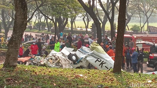 Pesawat latih jatuh di kawasan Bumi Serpong Damai, Kecamatan Serpong, Kota Tangerang Selatan, Banten. Sebanyak tiga orang tewas dan dua lagi masih terjebak.