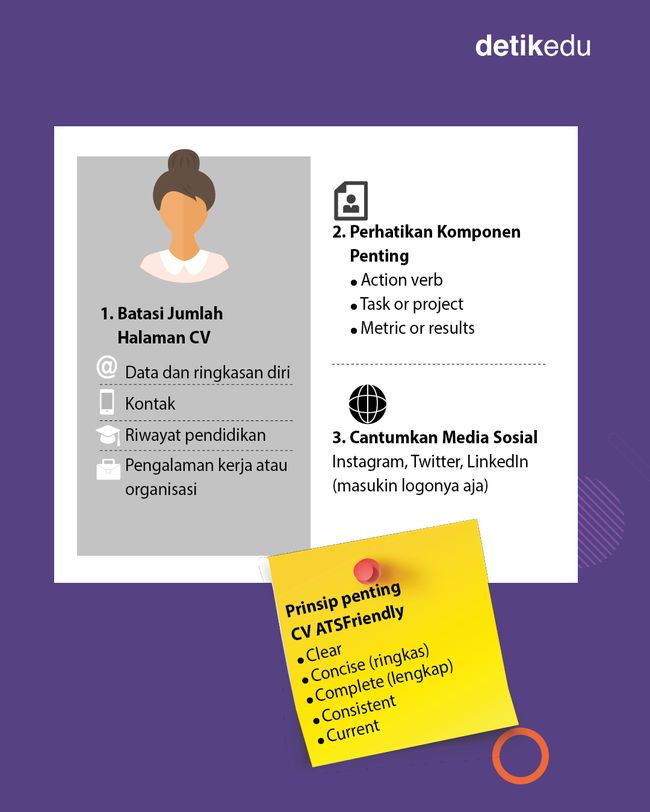 Karena itu, penting bagi pencari kerja untuk membuat CV yang ramah terhadap ATS (ATS friendly) sehingga CV mereka mudah terbaca oleh sistem tersebut. Jika detikers masih bingung bagaimana cara membuat CV ATS friendly, maka simak informasi mengenai tips membuat CV ATS friendly berikut ini.