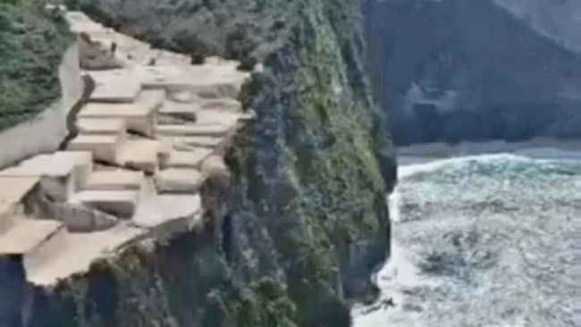 Sebuah video menunjukkan proyek pembangunan di tebing Pantai Kelingking, Desa Bunga Mekar, Kecamatan Nusa Penida, Kabupaten Klungkung, Bali viral di media sosial (medsos). Video yang beredar di medsos menunjukkan tebing dibelah persis menghadap laut lepas.