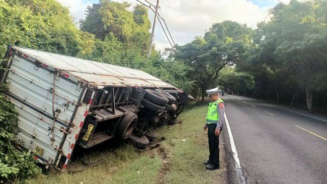 Kecelakaan lalu lintas (lakalantas) terjadi di Jalan Raya Denpasar-Gilimanuk Km 124-125, Minggu (14/7/2024) pagi. Sebuah truk boks terperosok ke parit setelah berusaha menghindari bus yang mendahului kendaraan lain di jalur kanan.