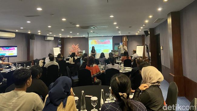 Sejumlah peserta terlihat mengikuti kegiatan Mental Health Awareness Training (MHAT) di Away Bali Legian Camakila Convention Center, Sabtu (22/6/2024). Laki-laki dan perempuan saling berbaur dalam acara tertutup yang diisi pemateri konsultan mental health Empowering Awareness Asia, Sari Puteri Deta, itu.
