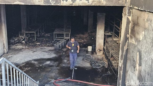 "Api juga sempat naik ke lantai atas dan membakar los pada gedung lantai satu dan lantai dua blok timur yang terbakar berupa satu los kain di lantai dua," jelas Umar.