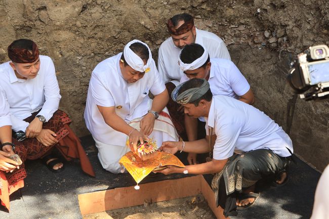 Pemerintah Provinsi Bali Bersama PT Sarana Bali Dwipa Jaya menggelar Upacara Pengeruwakan TOD Sentral Parkir Kuta di Bali, Rabu (4/9/2024). Upacara tersebut sebagai pertanda dimulainya pembangunan Mass Rapid Transit (MRT) di Bali.