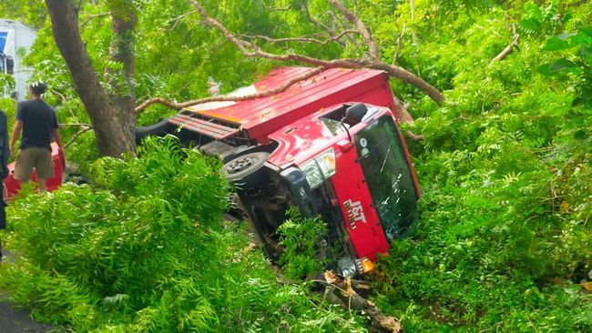 Saat itu, di dekat lokasi ada pejalan kaki bernama Mintono (50). Dia terhindar dari tabrakan truk. Namun, Mintono tertimpa ranting pohon yang tumbang.