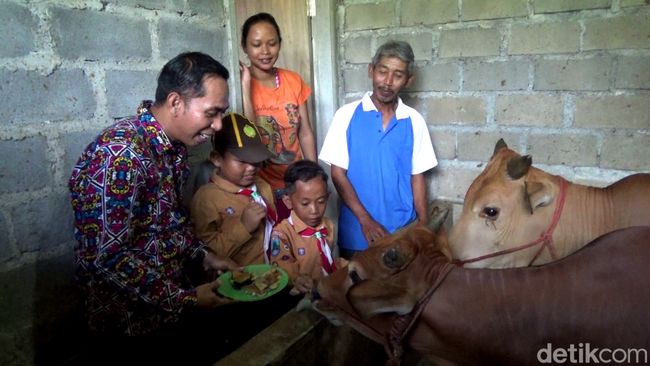 Denpasar - Viral video seorang guru berdebat dengan siswanya terkait sapi makan martabak, hingga akhirnya dibuktikan sendiri. Ternyata sapi tersebut benar-benar mau makan martabak. Dinas Ketahanan Pangan dan Pertanian Lumajang memastikan tak ada efek samping sapi memakan martabak, asalkan tak tercemar jamur atau bakteri.