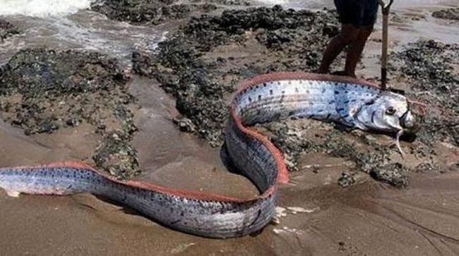 Seekor ikan oarfish raksasa atau kerap disebut 'ikan kiamat' kembali ditemukan terdampar di Pantai Grandview Beach, California. Penemuan ini menjadi yang ketiga dalam tiga bulan terakhir di negara bagian tersebut, sekaligus ke-22 dalam kurun waktu satu abad terakhir.