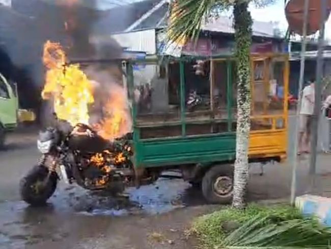 Motor roda tiga pengangkut sampah milik Kelompok Swadaya Masyarakat (KSM) Jagra Palemahan terbakar pada Rabu (11/12/2024) sekitar pukul 07.30 Wita. Peristiwa ini terjadi di Jalan Raya Denpasar-Gilimanuk, tepatnya di wilayah Desa Banyubiru, Kecamatan Negara.