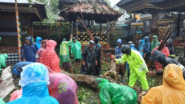 "Kami segera tangani bersama warga, karena tim BPBD Gianyar juga sedang melakukan penanganan di banyak titik karena hujan angin di wilayah Gianyar," jelas Sukadana.