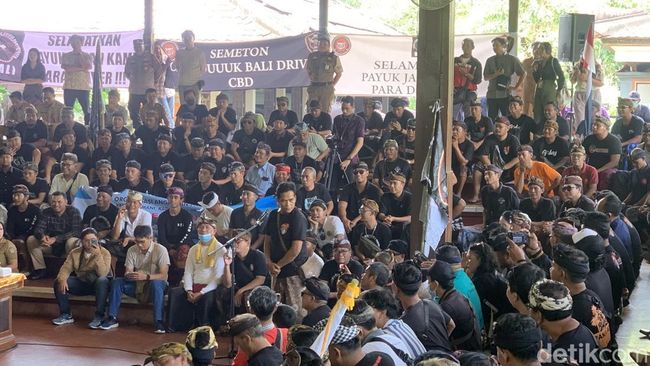 Massa yang menamakan diri Forum Perjuangan Driver Pariwisata Bali menggelar aksi damai di depan gedung DPRD Bali, Senin (6/1/2025). Banyak hal yang mereka keluhkan. Salah satunya, sopir menemukan fenomena banyaknya warga negara asing (WNA) menjemput turis asing yang baru tiba di Bandara Ngurah Rai, Badung, Bali.