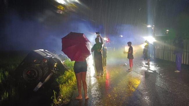 "Di dalam mobil ada tiga orang, tapi selamat. Singkat kejadian karena menghindari kendaraan, sopir banting setir ke kiri dan mobil masuk ke sawah," kata Sumantara.