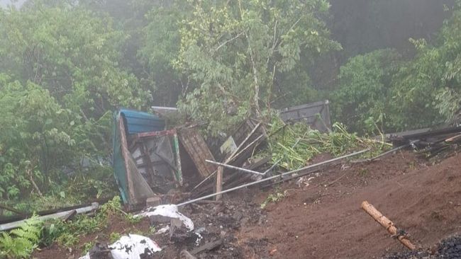 Tanah longsor terjadi di Banjar Yeh Ketipat dan Banjar Asah Panji, Desa Wanagiri, Kecamatan Sukasada, Buleleng, Bali, Rabu (15/1/2025). Sebanyak delapan bale bengong rusak karena musibah ini.