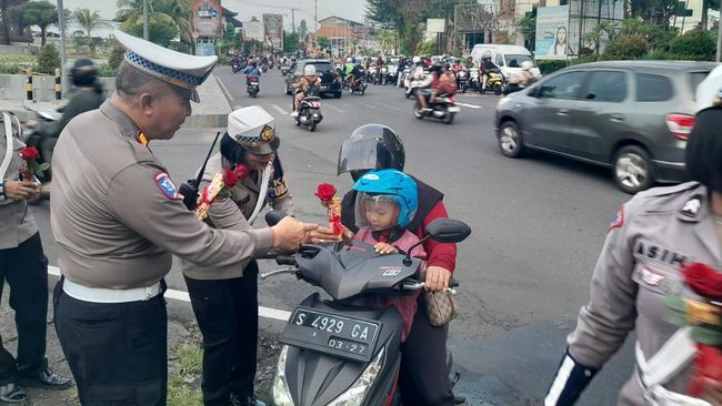 "Selain kami menggelar kegiatan Ops Keselamatan, kami juga memberikan bunga dan cokelat di Hari Valentine ini," ujar Kasat Lantas Polres Tabanan AKP I Made Adi Sutapa, Jumat (14/2/2025) siang.
