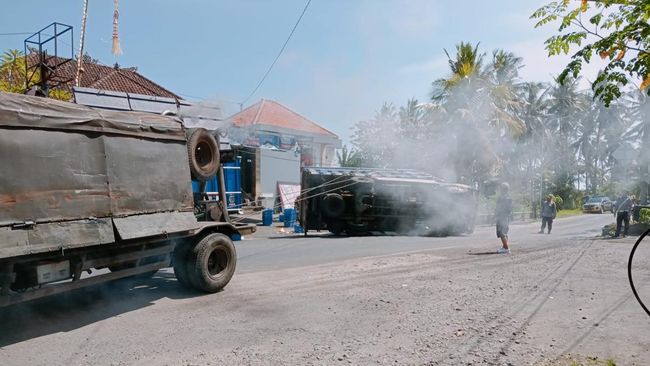 Kapolsek Pekutatan, Kompol I Putu Suarmadi, mengungkapkan kecelakaan truk berpelat nomor P 8680 UV tersebut terjadi akibat ban belakang pecah sekitar pukul 11.30 Wita pada Jumat (25/4/2025). Truk pun terguling dengan posisi melintang di tengah jalan.