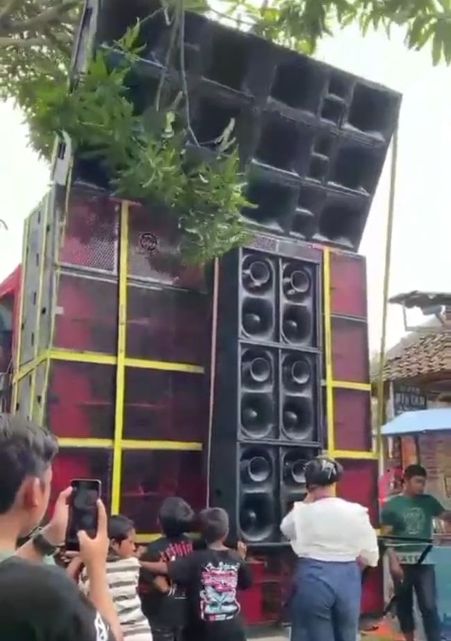 Sound horeg di Desa Sumber Anyar, Jambisari Darusholah, Bondowoso, Jawa Timur, roboh dan menimpa dua warga. Korban yakni Nadia Friska (17) dan Firmansyah (9).
