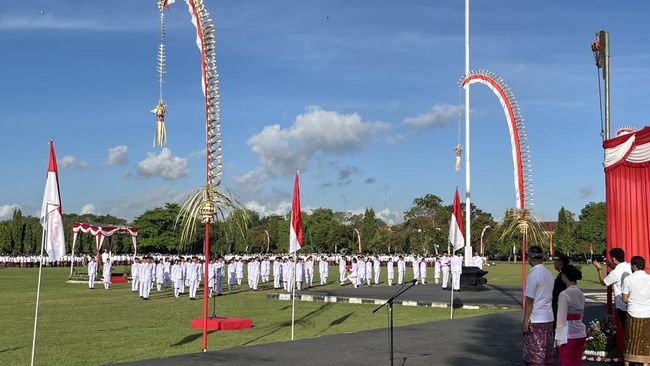 Gubernur Bali, Wayan Koster, memimpin upacara Peringatan Hari Lahir Pancasila di Lapangan Niti Mandala Renon, Denpasar, Senin (2/6/2025). Koster dalam pidatonya berpesan Pancasila bukan hanya sekadar dokumen historis atau teks normatif yang tertulis dalam pembukaan Undang-Undang Dasar 1945.