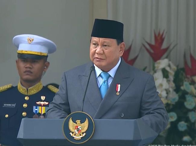 "Saya sekali lagi, mengimbau, mengajak mereka-mereka jangan menganggap negara ini tidak ada, jangan menganggap negara ini bisa dipermainkan, jangan menganggap NKRI bisa dibohongi, jangan menganggap NKRI bisa ditipu," kata Prabowo dalam amanatnya saat upacara di Gedung Pancasila, Kementerian Luar Negeri, Jakarta, Senin (2/6/2025).
