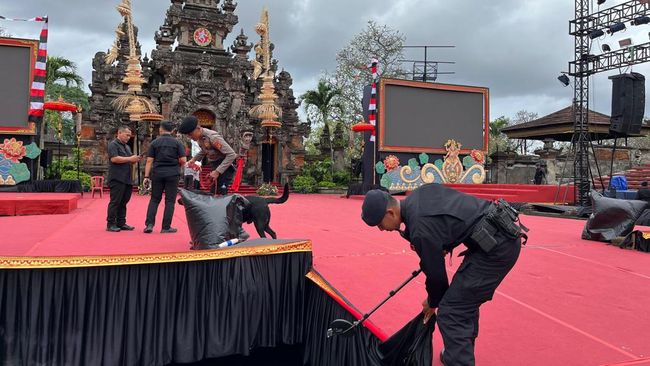 Personel menyisir satu-persatu lokasi, mulai dari seputaran panggung Ardha Candra, kursi, gedung usaha mikro, kecil, dan menengah (UMKM) hingga toilet, termasuk tempat umum lain.