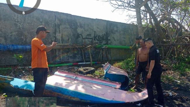 Perahu nelayan terbelah setelah diterjang gelombang tinggi di perairan Yeh Kuning, Jembrana, Bali. I Wayan Sugiarta yang melaut sendirian berusaha menyelamatkan diri dengan berenang ke tepi pantai.
