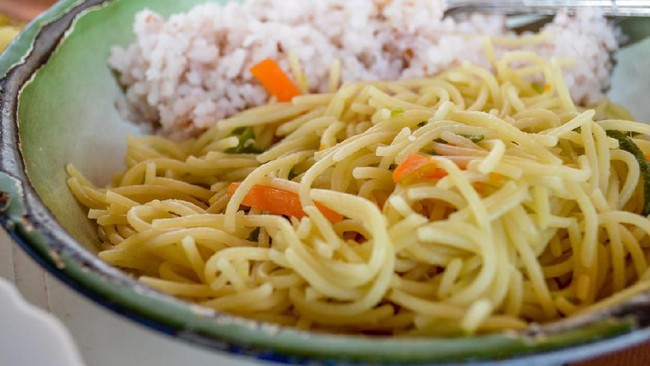 Makan mi campur nasi menjadi kebiasaan banyak orang Indonesia. Kedua makanan sumber karbohidrat ini kerap kali dikonsumsi agar merasa kenyang lebih lama. Ada risiko ketidakseimbangan gizi jika keseringan makan mi campur nasi.