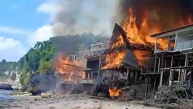 Kebakaran hebat melanda bekas bangunan hotel Blue Ocean di Pantai Bingin, Desa Pecatu, Kuta Selatan, Badung, Bali. Peristiwa itu membuat proses pembongkaran bangunan liar di kawasan tersebut disetop sementara.